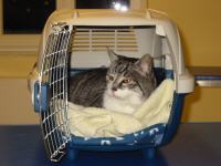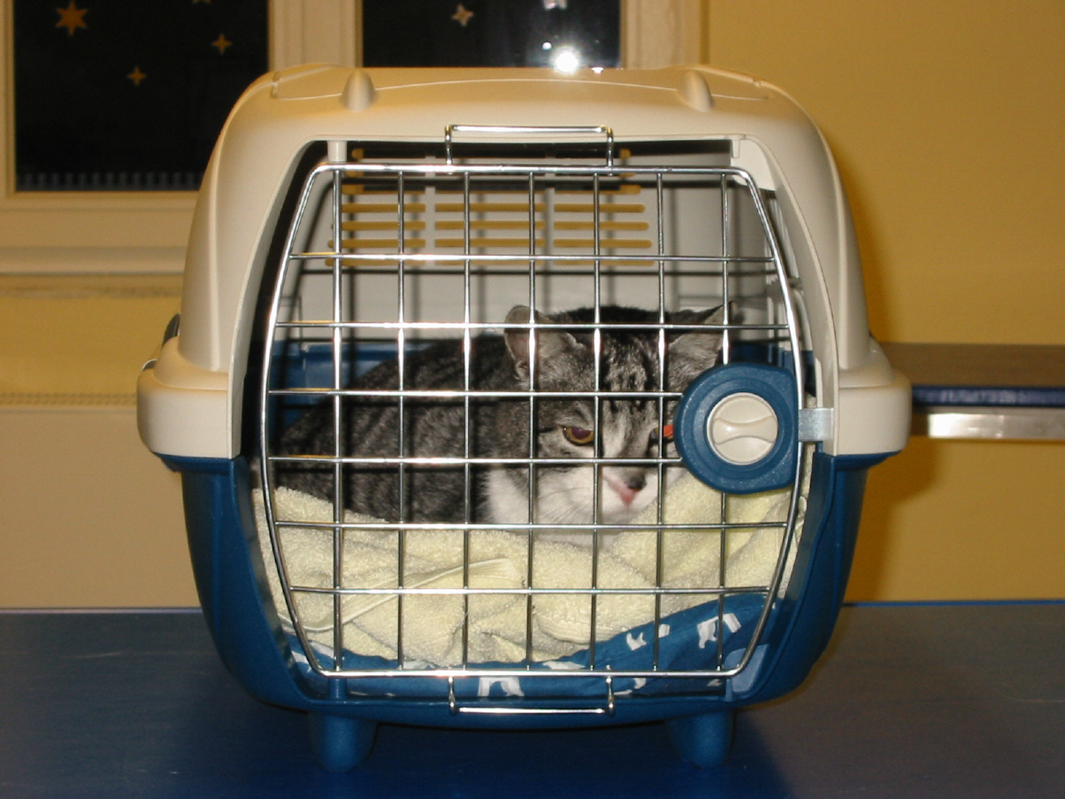Nach ca. 2 Jahren wird es immer schwieriger Felix 2 Mal am Tag die Tabletten zu geben. Die Besitzerin beschließt auf Anraten unserer Praxis eine Radiojodtherapie durchführen zu lassen. Dabei wird dem Tier eine radioaktive Jodlösung direkt ins Blut gespritzt. Er muß dafür nach Hamburg oder Gießen gebracht werden, da diese Behandlung nur von 2 Tierkliniken in Deutschland durchgeführt werden darf.