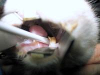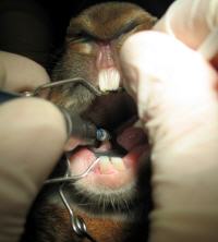 Um eine Zahnerkrankung diagnostizieren zu können , muss die Maulhöhle sorgfältig untersucht werden. Ein exakter Überblick kann jedoch nur unter Sedierung / Narkose des Tieres erfolgen. Sollten sich Zahnspitzen oder Fehlstellungen finden, müssen Röntgenbilder angefertigt werden. Überwachsene Scheidezähne werden mit einer Trennscheibe / Fräser gekürzt. Das Abknipsen mit einer Zange führt meist zum Splittern der Zähne und sollte vermieden werden. Spitzen und Kanten an den Backenzähnen sowie überwachsene Backenzähne werden mit einer speziellen Fräse abgeschliffen.